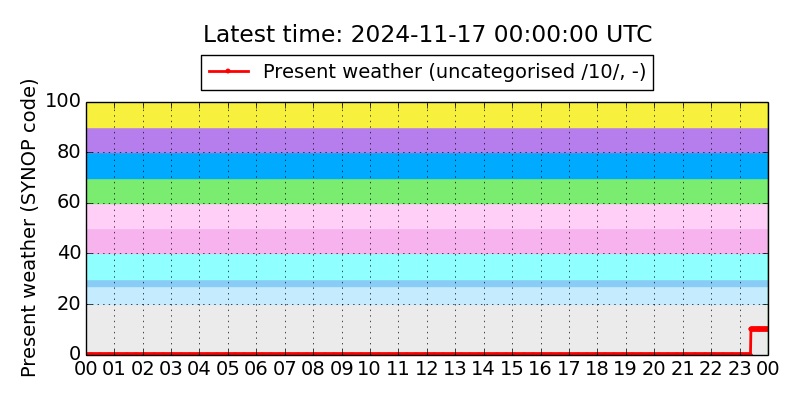 Legend for the background colors of the present weather plot: