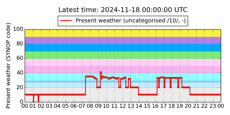 Legend for the background colors of the present weather plot: