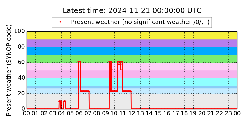 Legend for the background colors of the present weather plot: