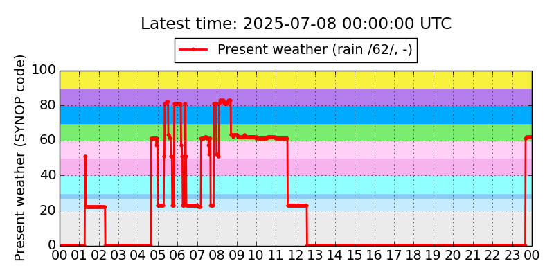 Legend for the background colors of the present weather plot: