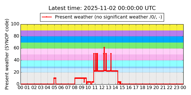 Legend for the background colors of the present weather plot: