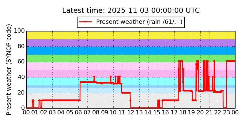 Legend for the background colors of the present weather plot: