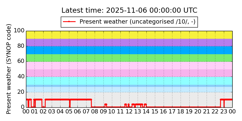 Legend for the background colors of the present weather plot: