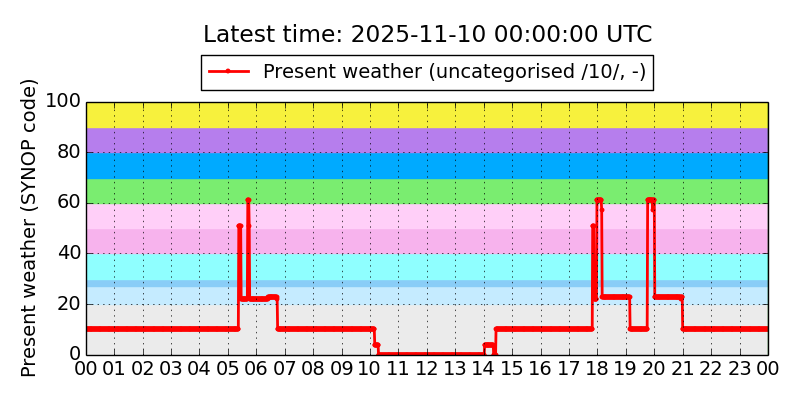 Legend for the background colors of the present weather plot: