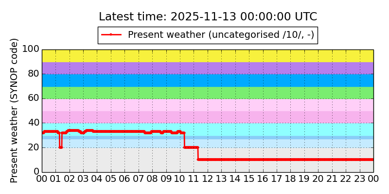 Legend for the background colors of the present weather plot: