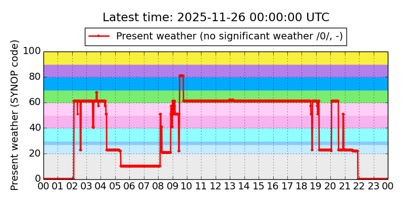 Legend for the background colors of the present weather plot: