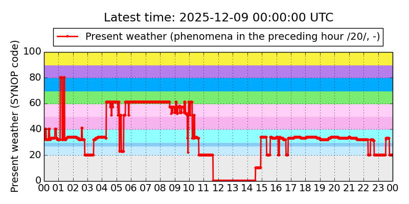 Legend for the background colors of the present weather plot: