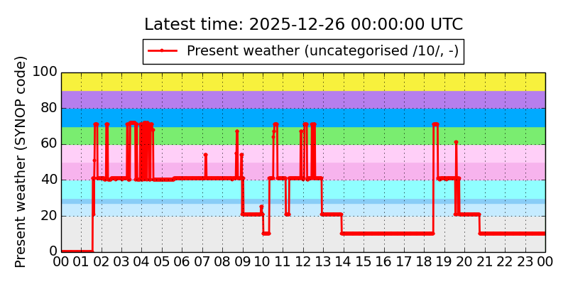 Legend for the background colors of the present weather plot: