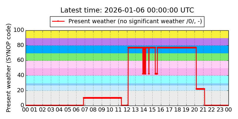 Legend for the background colors of the present weather plot: