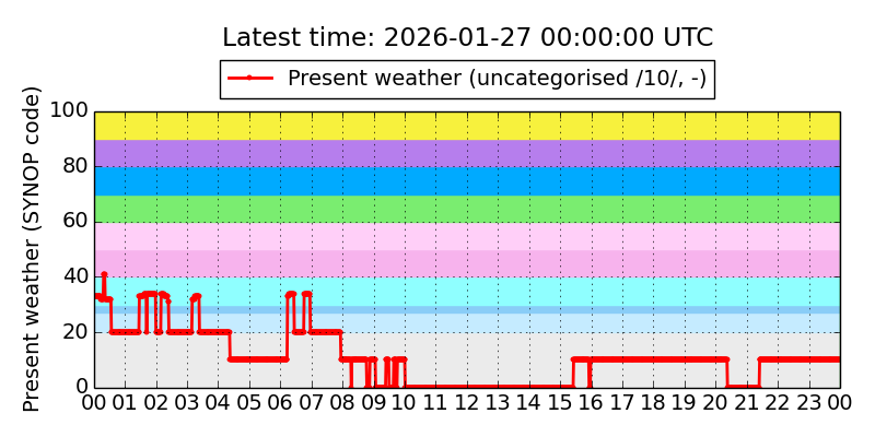 Legend for the background colors of the present weather plot: