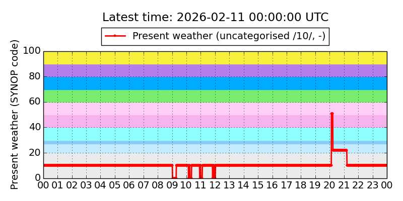 Legend for the background colors of the present weather plot: