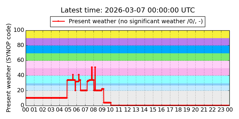 Legend for the background colors of the present weather plot: