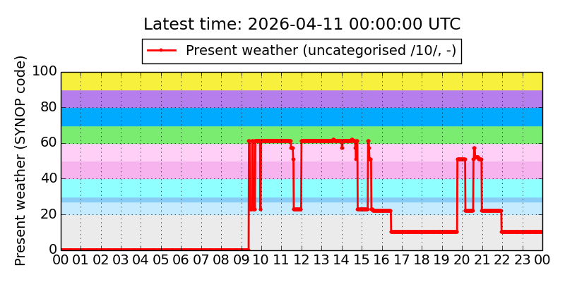 Legend for the background colors of the present weather plot: