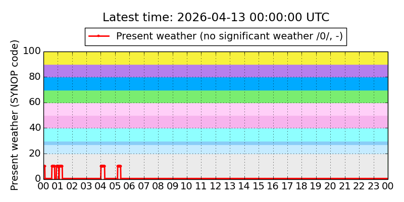 Legend for the background colors of the present weather plot: